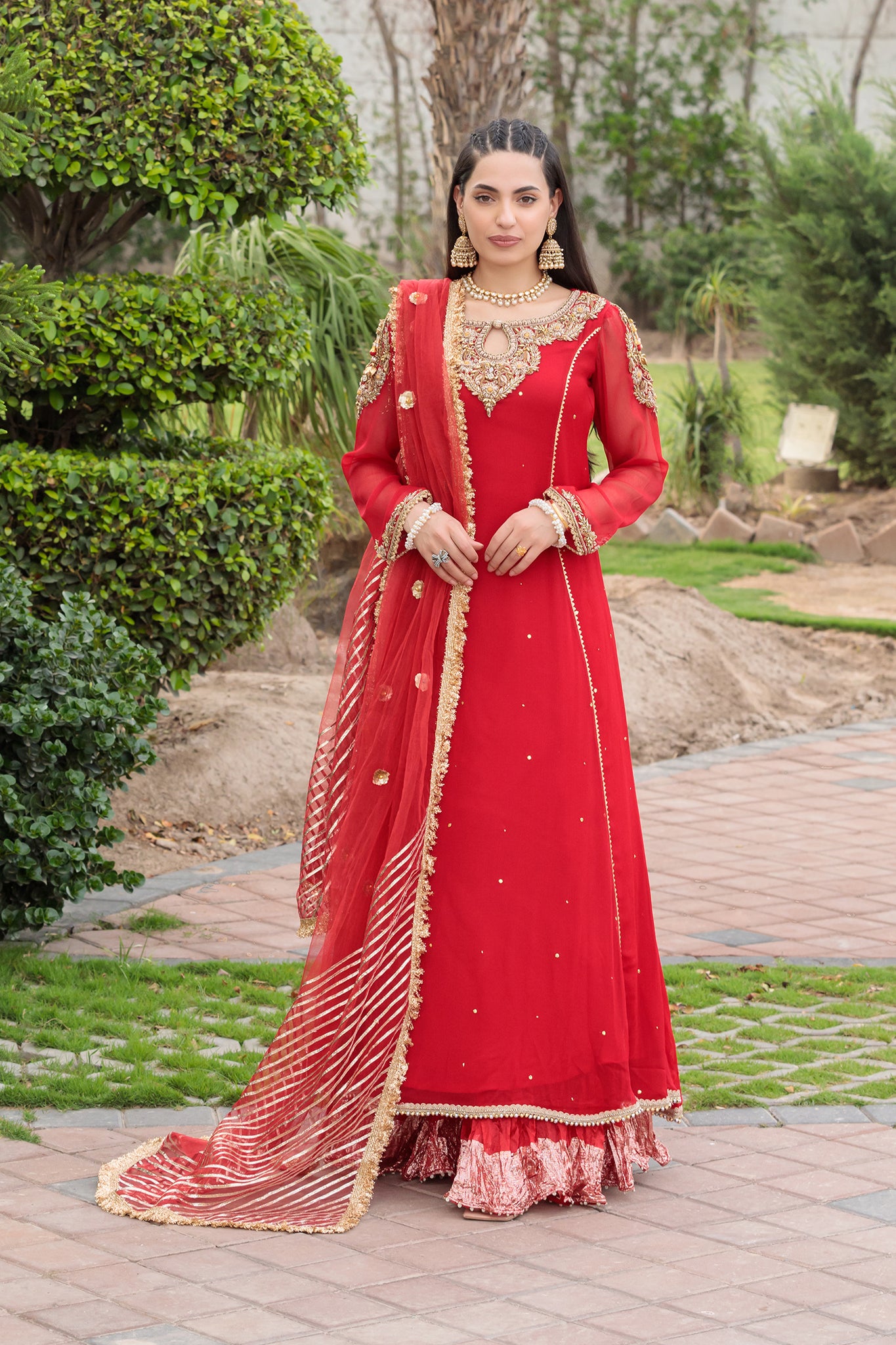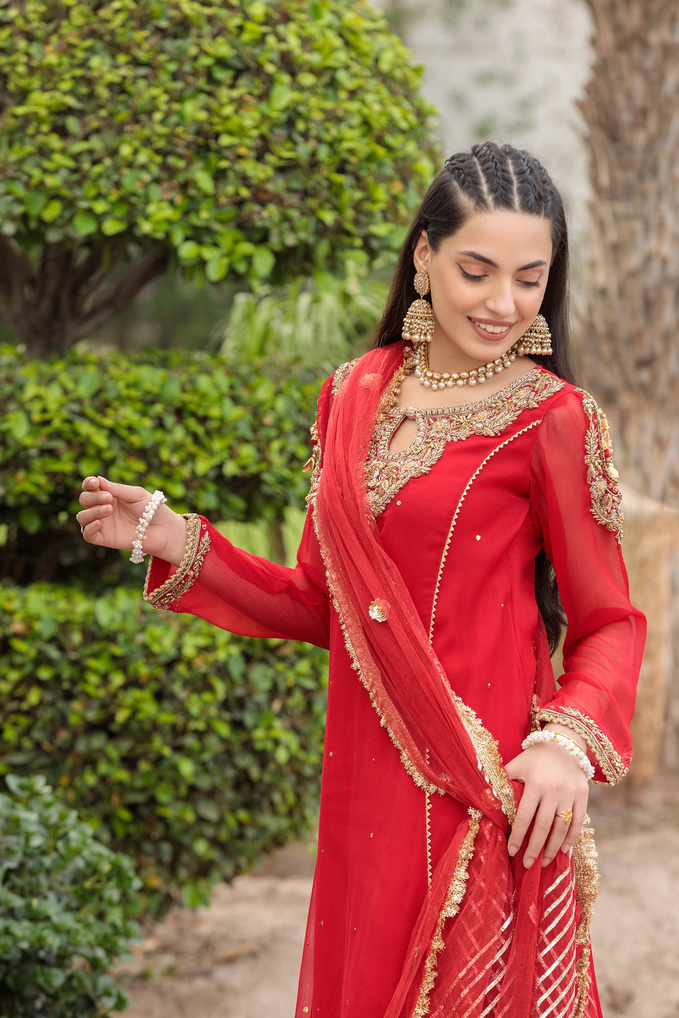 Sleeves: Pure Crinkle Chiffon (Hand Embroidered with Kora, Dabka, Resham, Tilla, Gota and Embellishments)