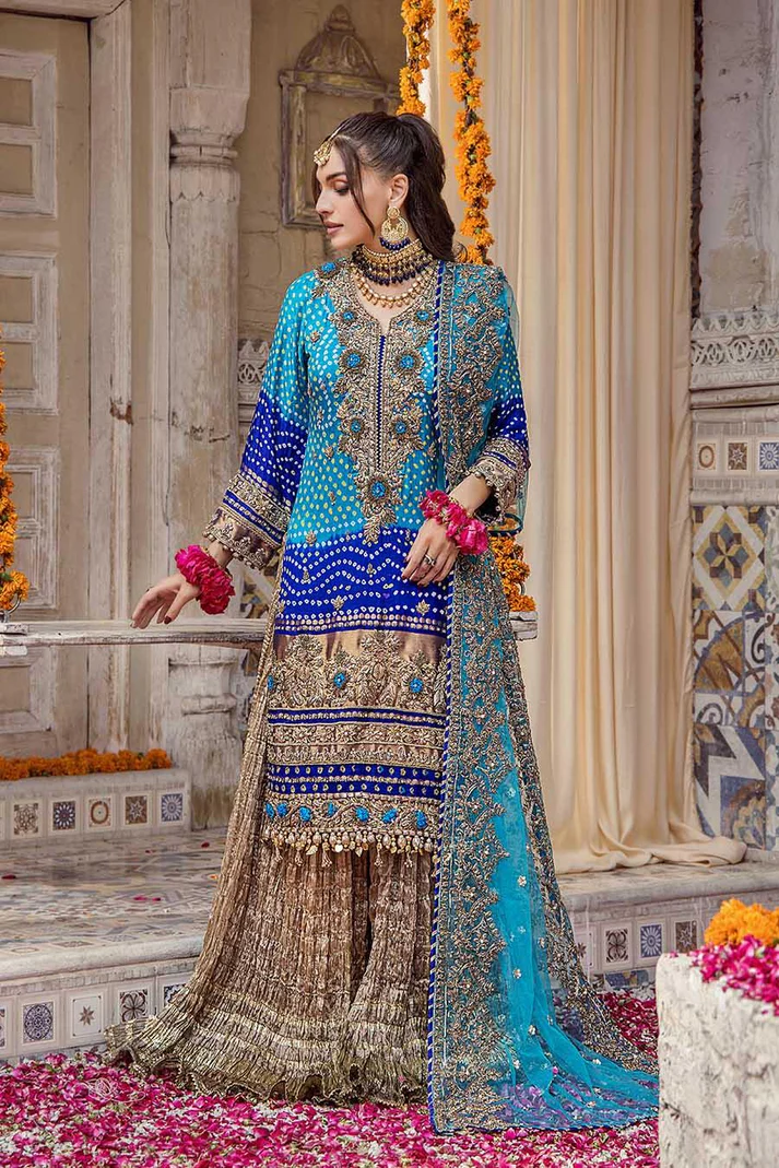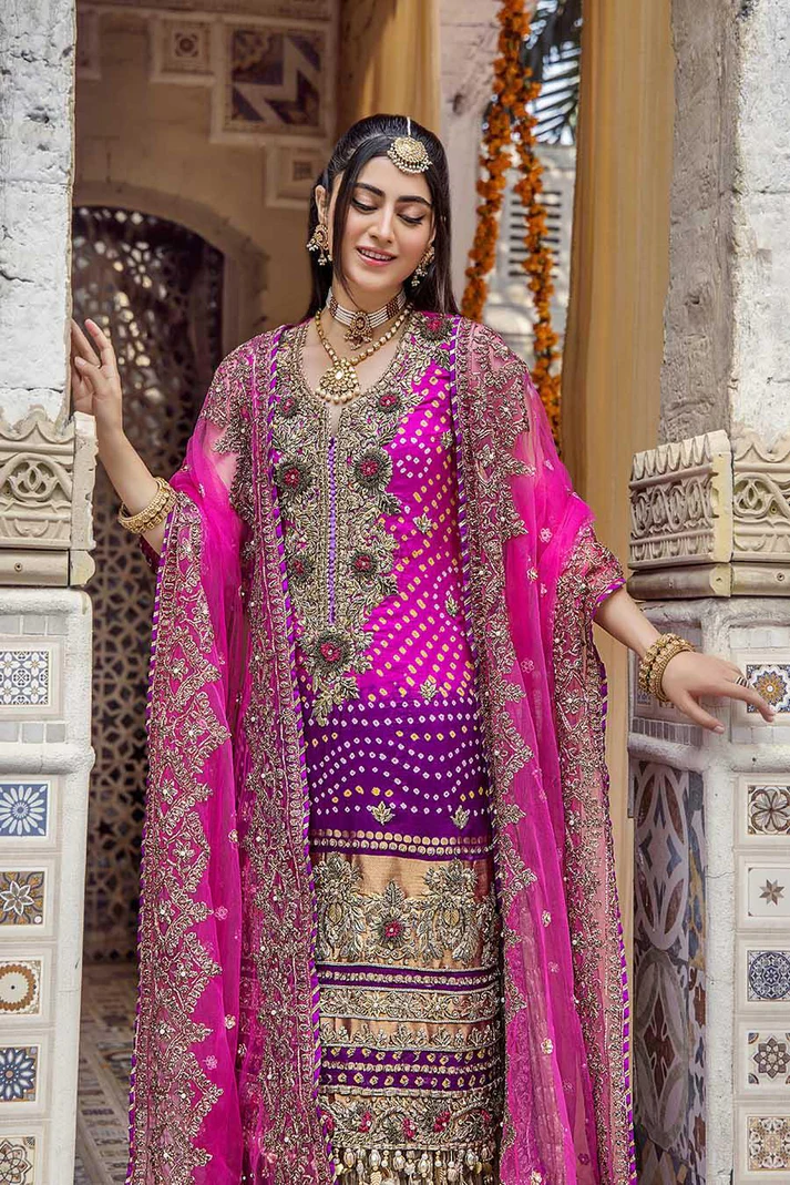 Shirt: Pure Silk Chunnari (Hand embroidered with Kora Dabka and Gotta work)