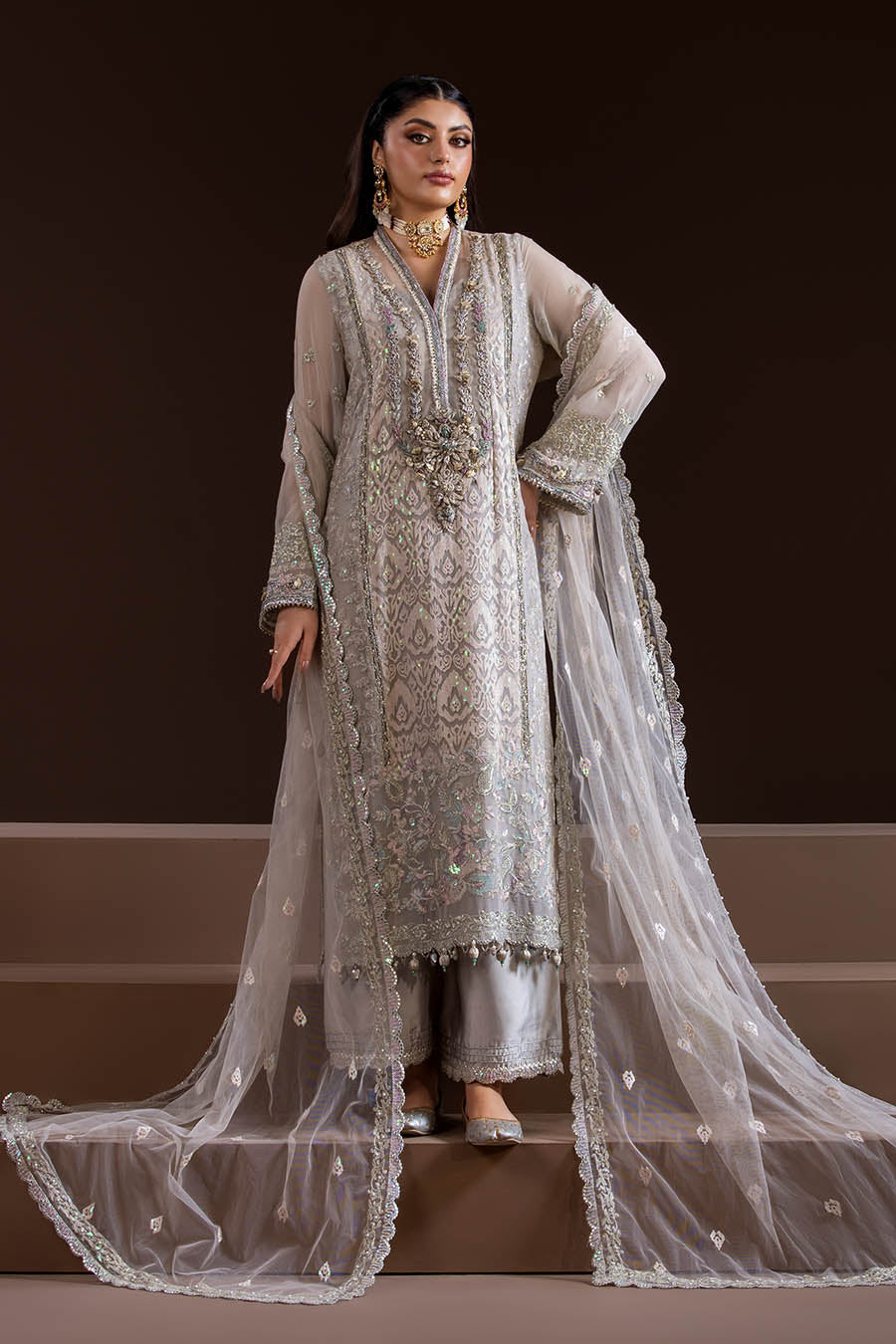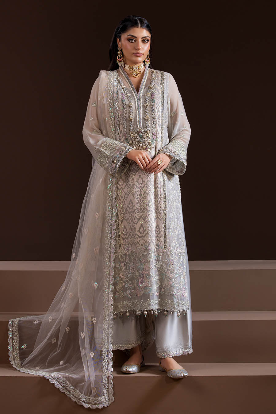 - Shirt: Pure Crinkle Chiffon (multihead embroidery with 3d work)
