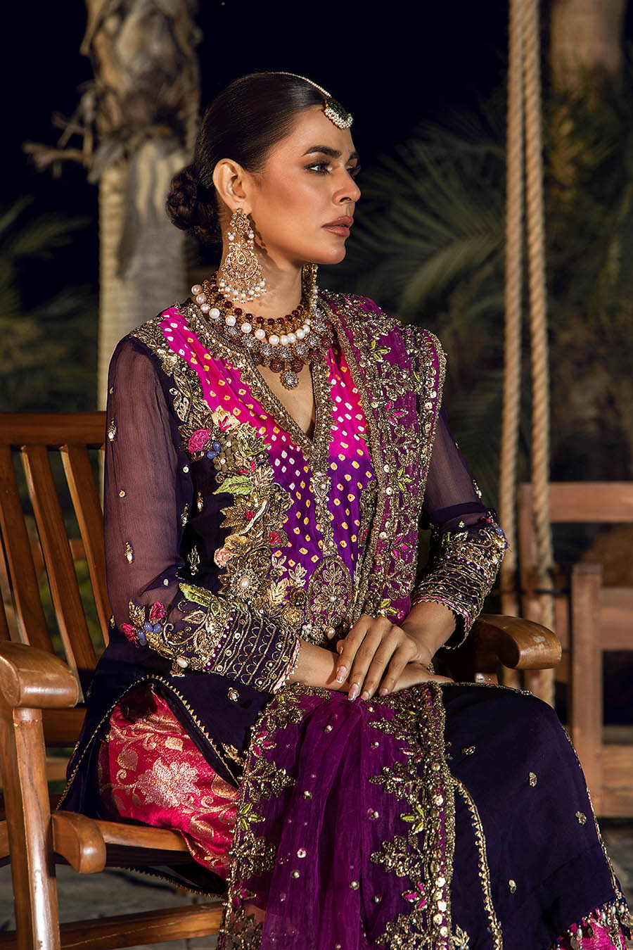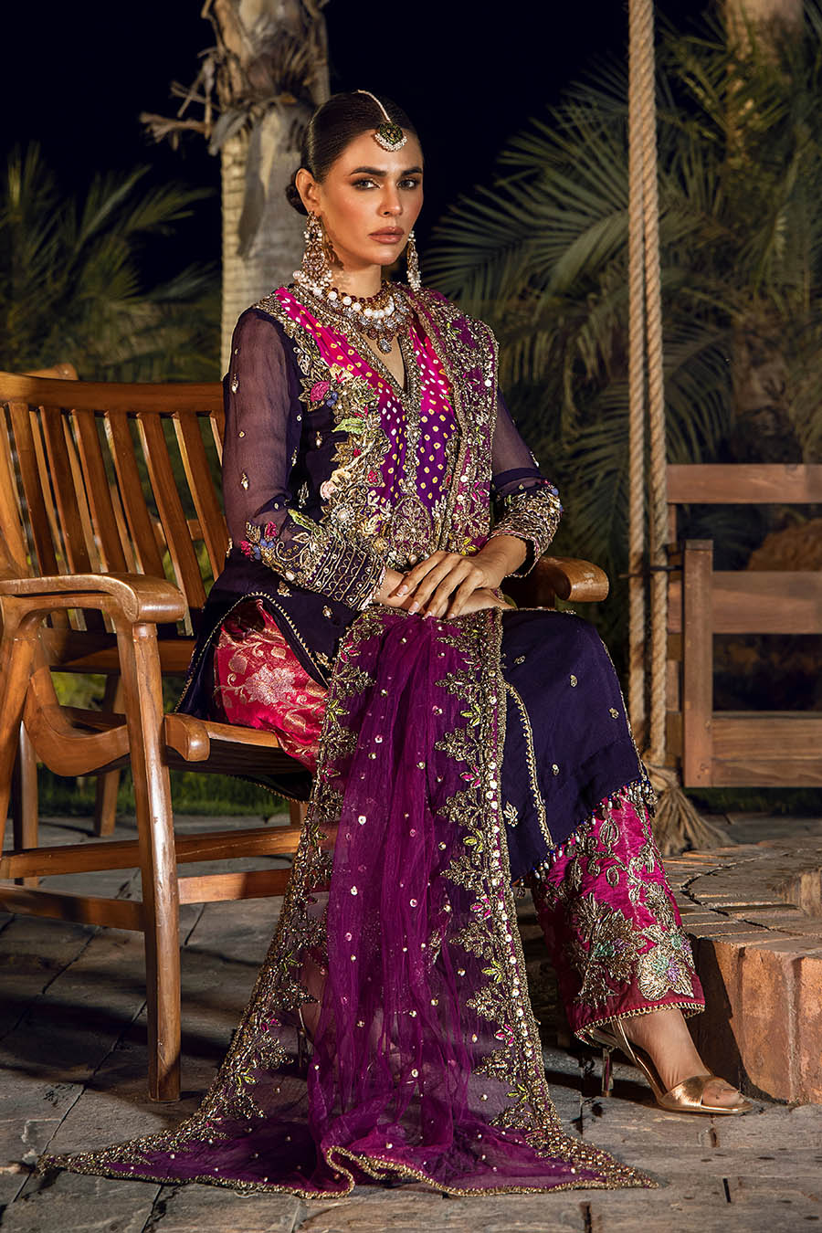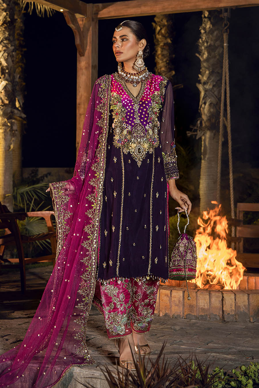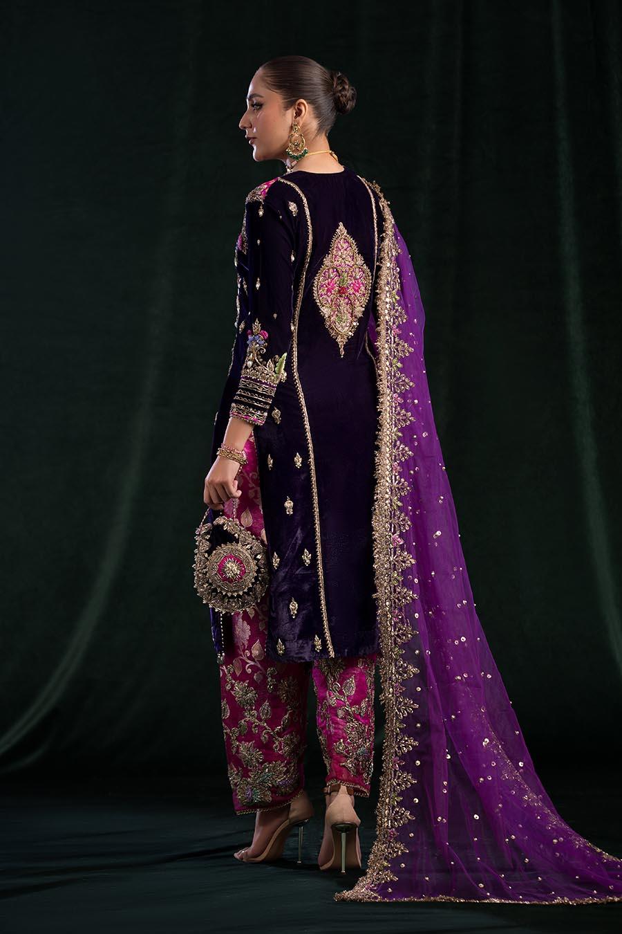 • Shalwar:  Kamkhwab fabric (Embroidered with kora dabka gotta)